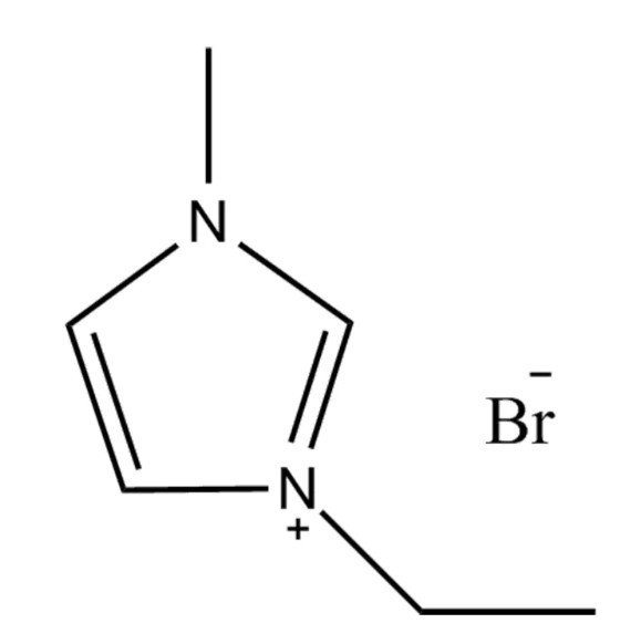 Molekula pozostáva z imidazoliového katiónu s etylovými a metylovými substituentmi a bromidového aniónu. Táto štruktúra uľahčuje silné iónové interakcie a vodíkové väzby, čo prispieva k jeho vysokej rozpustnosti v polárnych aj určitých nepolárnych rozpúšťadlách. Vďaka svojej polarite je tiež miešateľný s vodou a mnohými organickými rozpúšťadlami, ako je metanol, etanol a acetonitril.